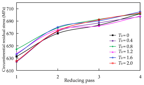 Different from the tube drawing, the tube is subjected to the pushing force during the PDR, and it is not affected by external force after reducing it, while the end of the reduced tube is warped. Liu et al. [15] studied the residual stress of one-pass PDR tube without wall thickness deviation by the X-ray method and simulation, the results showed that the circumferential residual stress is tensile from the inner to outer surface at the end, and it is compressive and tensile at the inner and outer surface of sizing area, respectively.
