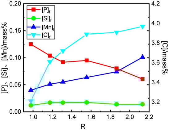 3.1. Effect of Basicity on the Contents and Removal Ratios of Elements in the Hot Metal after Dephosphorization