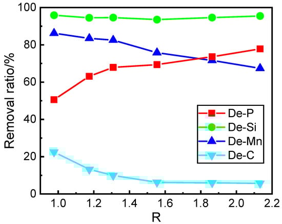 Effect of basicity on the removal ratios of the elements in the hot metal after dephosphorization.
