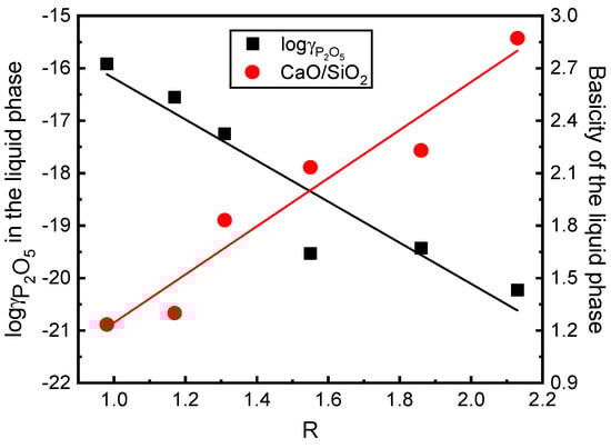 - With the increase of the basicity of the dephosphorization slag, the activity coefficient of P2O5, , in the liquid phase decreases, while the basicity in the liquid phase increases.