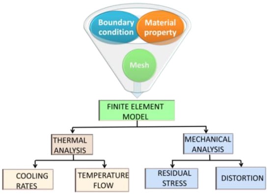 Computational models that replicate the welding process and optimize the operating conditions have been extensively utilized over the past two decades. FEA is an analysis of the thermal and mechanical behavior of FEM that is usually modeled in design software and assigned with specific material property (Figure 3). FEM in fusion welding, modeling the metal droplets and formation during the joining process, has improved weld quality and process stability [,].