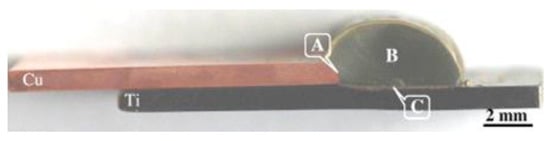 - Zhao, Y.; Wang, W.; Yan, K.; Liu, C.; Zou, J. Microstructure and properties of Cu/Ti laser welded joints. J. Mater. Process. Technol. 2018, 257, 244–249. [Google Scholar] [CrossRef]