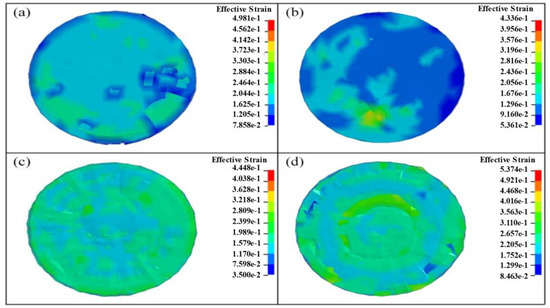 Figure 7 shows the deformation degree of the Ti layer of Ti–Al3Ti–Al laminated composites with different Al contents. It can be seen that with the increase of Al content, the maximum strain of the Ti layer in each sample is 0.498, 0.434, 0.445, and 0.537, respectively. The strain of Ti is the lowest at 10% Al content, indicating that the risk of fracture of the composites is low. This corresponds to the result of Figure 7b above.