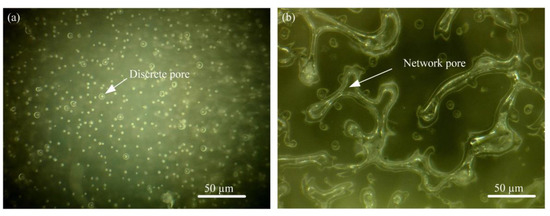 OM images of the bubbles’ morphologies: (a) type I bubbles and (b) type II bubbles.