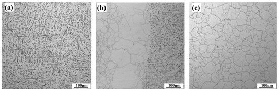Metallographic morphology of 310S stainless steel welded joints (a) WM (b) HAZ and (c) BM.