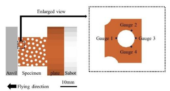 Although the behaviour of cellular materials under high-velocity impact has already been investigated, only a few studies focus on the high-pressure generation within cellular materials during impact [19,20,21]. The high-pressure phenomenon has been used in various fields, such as diamond production [22], nanocomposite material preparation, and powder solidification. It has also been applied to synthesise hydrogen-storage materials [23]. Therefore, the investigation of high-pressure generation within cellular materials may lead to further development of future predesigned application-oriented cellular materials. The advantages of the high pressure in each pore of the cellular material are that it can be used to synthesise new materials efficiently in a single experiment, and the high pressure inside the pores makes it easy to recover the synthesised materials.
