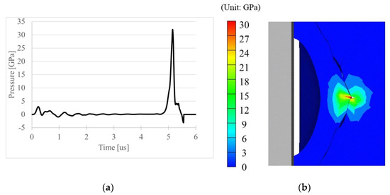 Computational simulation results; (a) Pressure history near pore (b) enlarged view at 5.1 µs.