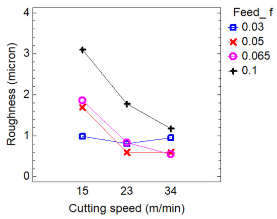 Interaction plot of the combined influence of the cutting speed and feed on the surface roughness.