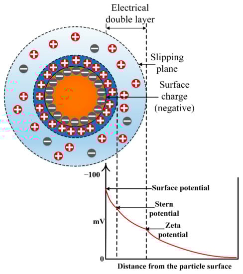 - Lunardi, C.N.; Gomes, A.J.; Rocha, F.S.; De Tommaso, J.; Patience, G.S. Experimental methods in chemical engineering: Zeta potential. Can. J. Chem. Eng. 2021, 99, 627–639. [Google Scholar] [CrossRef]
