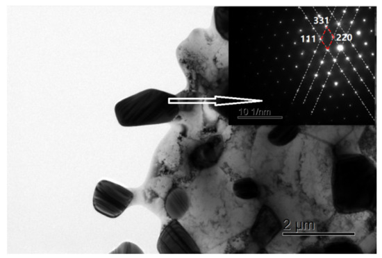 Figure 7 shows microstructure of BSS by HIP sintering at 1100 °C by the TEM observation with electron diffraction. It was demonstrated again that the boron phase was Fe1.1Cr0.9B0.9, which was the dark phase in the figure.