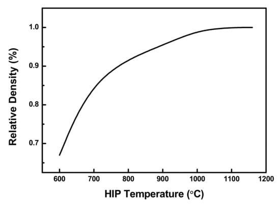 Relative density curve with HIP sintering temperature.