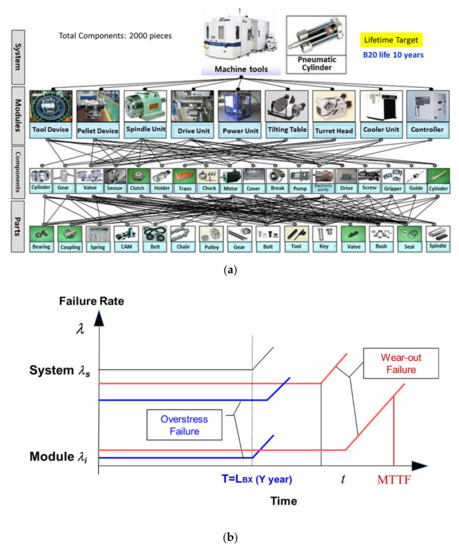 Product lifetime decided by newly designed module (a) categorization of multi-module machine center; (b) product lifetime LB.