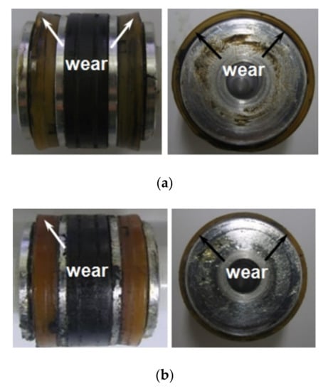 Failed piston seal in field: (a) initial state (b) final state.