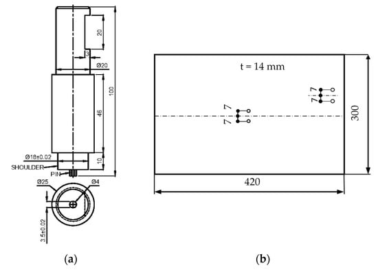 The FSW tool is critical for the production of high-quality welds. The FSW tool is made up of two parts: the shoulder and the pin. The tool’s primary functions are heat generation and material movement. The size of the pin and the shoulder is significant in terms of heat generation, and the pin shape is crucial for stirring the material and for material flow [,,,].