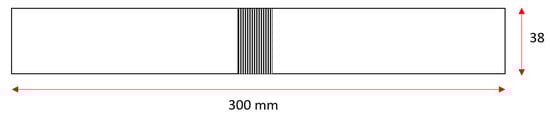 Several tests, including tests to determine tensile strength, bending, and hardness, were conducted. A hardness test was conducted to determine the hardness of the specimens that were produced from the FSW welding process. The Micro Vickers Machine HIGHWOOD HWMMT-X7 (TTS Unlimited Inc., Osaka, Japan), was used for the hardness tests. For the hardness measurements, the applied load was 200 gf, with a loading time of 10 s. To measure the indentation distance, each specimen was placed at 1 mm away from each other, with the centre point of the specimen being used as a reference, resulting in a total of 29 test points. A bending test was carried out to determine the bending strength of the welding results using a Universal Testing Machine type SHT 4106 (MTS/LABSANS, Guangdong, China), with a rated load of 1000 kN at the Mechanical Engineering Materials Laboratory, UNS Surakarta. For the bending test, two specimens were taken from each of the samples that had been obtained through the FSW, ensuring that each of the different conditions were represented, according to the AWS D1.2 standard. The bending test was carried out by placing the specimen on the two supports of the workpiece. The workpiece supports were cylindrical, with a diameter of 30 mm and an inner distance of 38 mm between the two supports, while the pressure roller had a diameter of 27 mm. The specimen was carefully placed so that it was on the joint line and centered between the two supports. The dimensions of the bending test specimens are depicted in Figure 5.