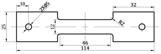 For the tensile specimen, specimens were machined from the raw sheets with the longitudinal direction parallel to the rolling direction. Figure 2 shows the dog-bone shaped specimen design and the dimensions, which was designed according to reference. [17]. The length and width of the parallel zone were 46 mm and 12 mm, respectively. This could ensure a relatively large uniform temperature and deformation region (>8 mm × 12 mm), guaranteeing the reliability of the subsequent data calculation.
