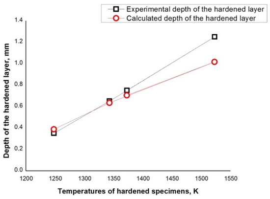 Dependence of the depth of the hardened zone on the surface temperature.