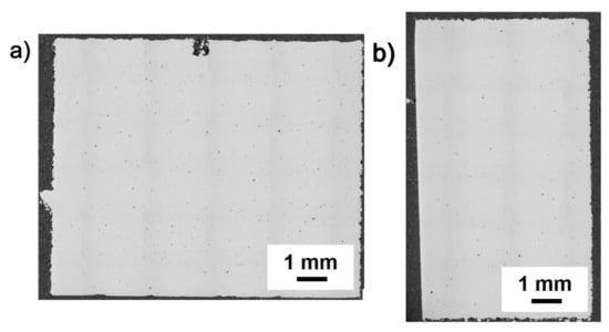 Image showing (a) XZ and (b) XY cross sections for full density samples. The average relative density for these samples was recorded to be 99.8%.