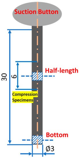 Schematic diagram showing the locations for metallography and compression test specimens.