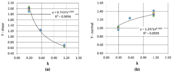 Table 9 and Table 10 summarize the variation of the Ynormal and Yshear parameters with λ and . These values are shown graphically in Figure 6a,b, respectively.
