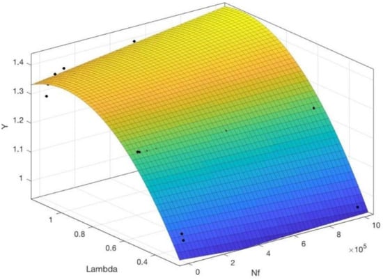 Figure 7 shows the linear regression performed for the Ynormal parameter as a function of λ and . This yielded equation 1, a second-degree polynomial of two variables with R2 = 0.99, indicating good agreement with the experimental data. The Ynormal values used in this regression were taken from Table 9.