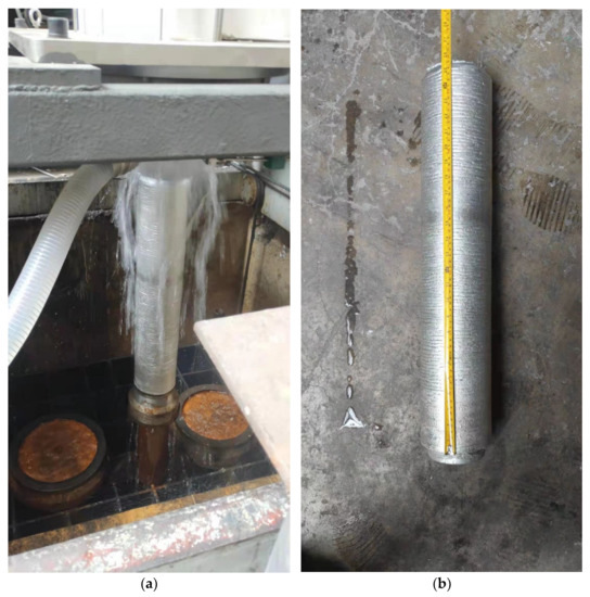 Figure 8 shows photos of the preparation of an antifriction bearing bush blank using a semi-continuous cast AlSn20Cu alloy. Figure 8a,b indicates a hot rolled billet at 210 °C for the first time and second time, respectively. Coating was applied to the surface of the sheet to prevent tin spillage, and the sheet was annealed at 250 °C for 10 h (Figure 8c). Figure 8d shows the final milled sheet after rolling.