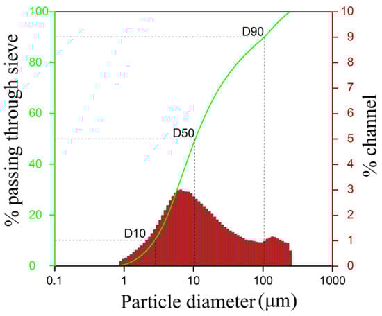 Particle size distribution of concentrated sulfide gold sample.