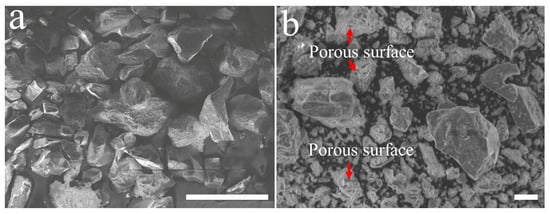 SEM micrograph, (a) before roasting, and (b) after roasting at 500 °C for 2 h.