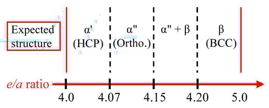 Expected structures of Ti alloys after a water quench with respect to electron-to-atom ratio scale [37].