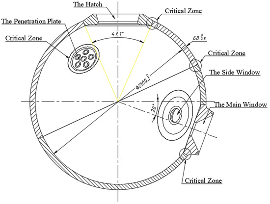 A sketch of spherical pressure hull with critical zones that cracks tend to initiate.