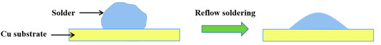 - Sun, H. Bi-Based High Temperature Lead-Free Solder Wetting and High Temperature Aging. Yan Shan University: Qinhuangdao, China, 2018. [Google Scholar]