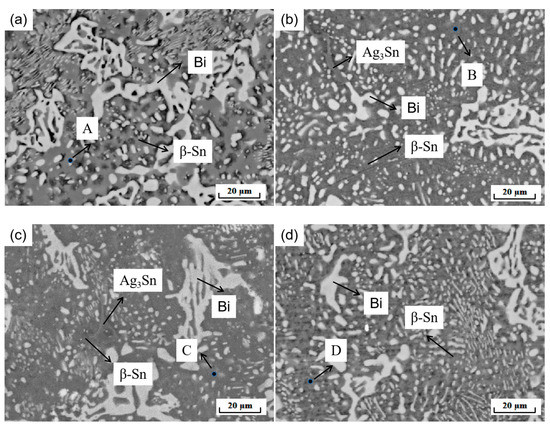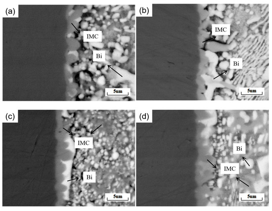 - Mokhtari, O.; Nishikawa, H. Effects of In and Ni Addition on Microstructure of Sn-58Bi Solder Joint. J. Electron. Mater. 2014, 43, 4158–4170. [Google Scholar] [CrossRef]