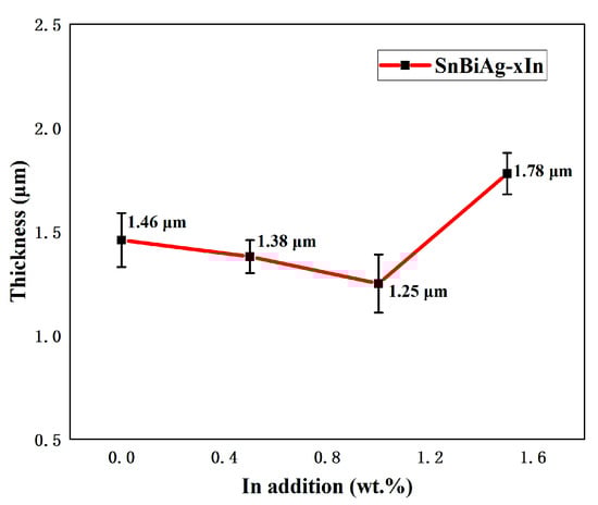 Chicago/Turabian StyleShen, Bingwei, Shangrong Yang, Mingyue Xu, Jincheng Zhao, Guohua Liu, Ming Xie, and Qiao Zhang. 2022. "Effect of in Addition on Thermodynamic Properties, Wettability, Interface Microstructure, and Soldering Performance of SnBiAg–xIn/Cu Solder Joints" Metals 12, no. 10: 1594. https://doi.org/10.3390/met12101594