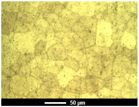 Furthermore, it seems that the anodization layer fully adhered to the mother Al sheet, as it was part of it before the anodization process. In addition, the study revealed a clear image of the microstructure of the used commercial Al, as shown in Figure 4, from which it could be concluded that there were some inclusions at the grain boundaries as well as in the matrix of the specimen.