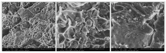 Figure 13. SEM micrographs of the fracture surface of 5083-H321 aluminum sample shock compressed to approximately 2.96 GPa. (a) Areas consisting of dimples resulting from void nucleation, growth, and coalescence with isolated areas of brittle fracture, (b) second phase Mn-Fe rich particles within the void dimples, and (c) smooth brittle-like surface [14].