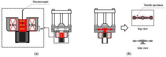 Figure 3. Process of rheocasting using EMS: (a) Stirring, (b) Injection.