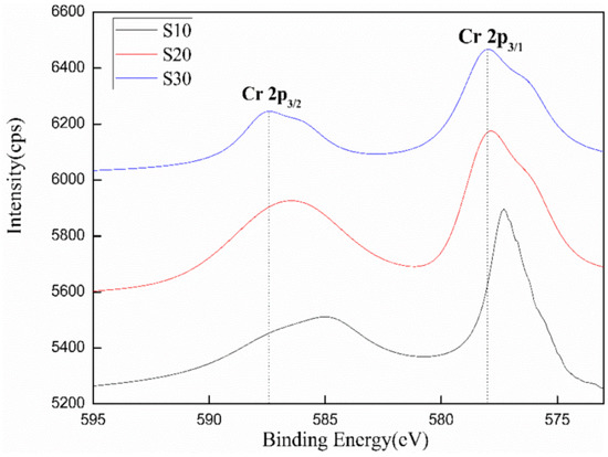 XPS patterns of Cr in different samples (S10, S20, S30).