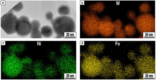 - Krasovskii, P.V.; Samokhin, A.V.; Fadeev, A.A.; Sinayskiy, M.A.; Sigalaev, S.K. Alloying effects and composition inhomogeneity of plasma-created multimetallic nanopowders: A case study of the W-Ni-Fe ternary system. J. Alloys Compd. 2018, 750, 265–275. [Google Scholar] [CrossRef]