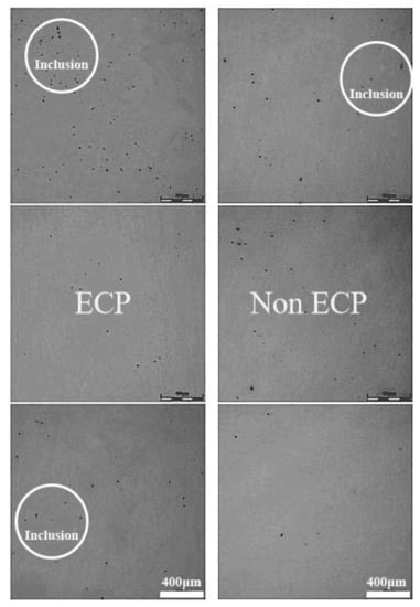 Micro morphology of inclusion distribution in the sample after electrified and non-electrified treatment.