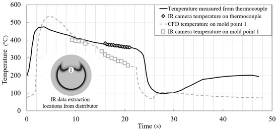 Measured and simulated temperatures on the die during the one-cycle HPDC.