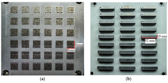 The SLM samples (a) Single layer sample (8 mm × 8 mm); (b) Cuboid sample (10 mm × 52 mm × 14.5 mm).