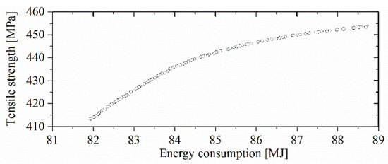 - The energy consumption and tensile strength could be simultaneously optimized. Hence, 2.6% of tensile strength could be improved and 3.4% of energy consumption could be saved.