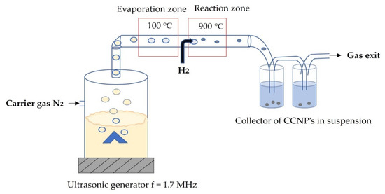 The synthesis of the CCNPs was performed by single-stage USP as shown in Figure 3.