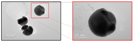 TEM analysis was used for a deeper observation of the CCNPs’ morphology. The obtained results show an almost spherical shape (not 100%) of the CCNPs, as seen in Figure 10.