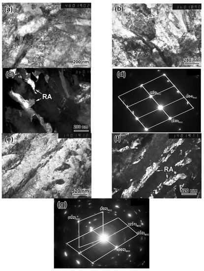 - Emadoddin, E.; Akbarzadeh, A.; Daneshi, G. Effect of intercritical annealing on retained austenite characterization in textured TRIP-assisted steel sheet. Mater. Charact. 2006, 57, 408–413. [Google Scholar] [CrossRef]