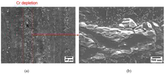 (a) Localized fatigue damage in Cr depleted zones, (b) persistent slip markings (PSM) at the surface of the 50CrMo4—37HRC steel, tested at 95 Hz, σa = 480 MPa.