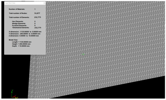 The solidification process of the slab is simulated by the thin-slicing method. In order to save computing time and simplify the calculation process, half of the slab section is used for calculation, and the slice size is 1135 mm × 295 mm × 10 mm. Then, ProCAST software is used for grid division. The geometric model and mesh are shown in Figure 1.