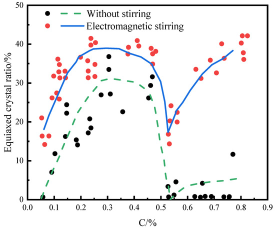 Effect of carbon content on the equiaxed grain ratio of billets [27].