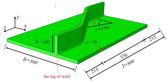 Nevertheless, the CSWs differ from those studied above. Due to the steel web’s bend angles and the welding’s geometric shape, the steel web details change suddenly [26]. For this reason, it is easy to produce stress concentration at the position of bend angles, which leads to comprehensive residual stress distribution. Currently, studies on the residual stress distribution in CSWs have been limited to consideration of the shear buckling resistance of corrugated webs. Kubo et al. [27] seem to be the first to study the distribution of residual stresses in corrugated webs, and they show that the welding flange clearly influences residual stresses. Kollár [28,29] used numerical simulation to analyze the thermal phenomena in the welding process and their effect on the initial geometric defects of the waveform web. The difference between the presence of inclined folds in CSWS and the planar web may further change the distribution of residual stress [30,31]. In the design process of CSWs, it is necessary to clarify the influence of wave angle and welding path on residual stress. The above literature shows that the impact of the welding process, path, steel web bending angle, and other parameters on the residual stress distribution mechanism is not clear.