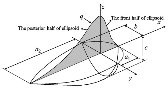 where the U and I denote the welding voltage and current, respectively, η denotes heat source efficiency, f1 and f2 denote energy classification function, respectively, and a1, a2, b, and c are the ellipsoidal shape parameters.